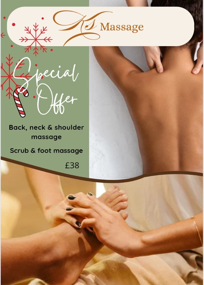 A soothing back, neck and shoulder massage to relax and ease muscle tension, plus an exfoliating foot scrub and massage that leaves your feet softer, lighter and removes tension from aching feet.